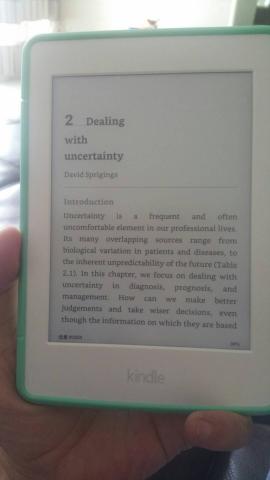 海淘了本书,没寄到手上,牛津出版社叫我到本地邮政局问问看--没勇气去邮政局,借个kindle试试--牛津的牛人也说:医疗中”不确定因素”常让人“不舒服”,咱这的医生除了医疗的不确定性,还有比如:被病人打,被医保扣钱……等不确定性。